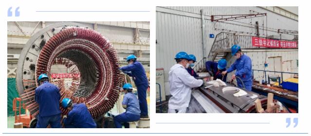 線圈制造部下線工段1005-313重點項目面臨著工期緊、任務(wù)重的境況,負(fù)責(zé)該項目的攻堅小組6名成員不約而同地報名駐廠工作,連續(xù)多日加班加點進行該項目電動機定子和轉(zhuǎn)子下線工作,并在內(nèi)部開展質(zhì)量自檢工作,保證了生產(chǎn)工期和產(chǎn)品質(zhì)量。