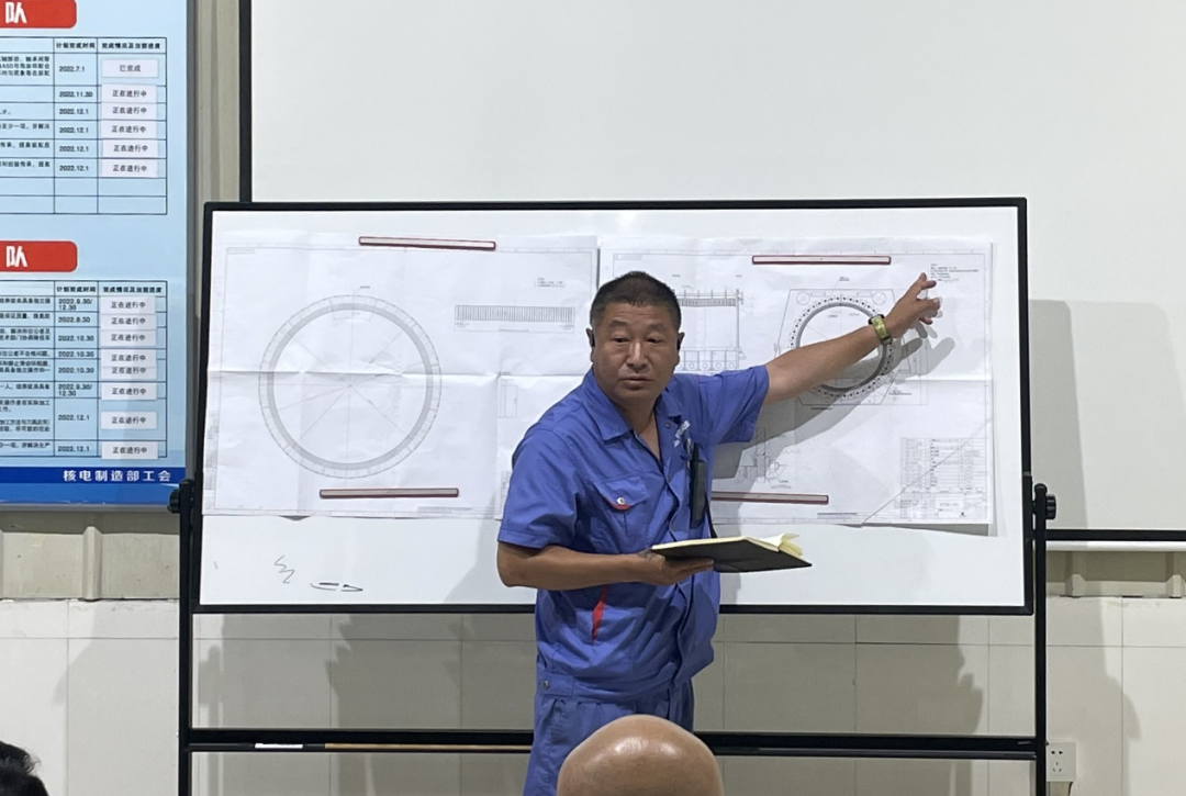 AP1000主泵電機是第三代核電技術(shù),AP1000定子鐵心裝壓的裝配方式與國內(nèi)外任何電機都不同,它采用的定子裝壓胎具膨脹心軸是從國外進口的,這是一個新型的設(shè)計理念,一切需要從零開始。他與工藝人員集思廣益,深入研究,針對AP1000定子鐵心裝壓制定了專項工藝守則,將此項技術(shù)固化下來,為后續(xù)定子鐵心裝壓提供了技術(shù)指導(dǎo)。此項“大型屏蔽電機定子鐵心裝壓工藝”獲得了國家專利。2017年3月,動裝公司CAP1000項目首臺夾套熱套圓滿完成。夾套熱套工作屬于關(guān)鍵工序且難度較大,工藝要求極高,因內(nèi)夾套表面布滿水道,所以在夾套熱套過程中,保持內(nèi)夾套與外夾套水平居中至關(guān)重要。一旦出現(xiàn)偏差,極有可能在外夾套低端面與某一高度水道邊緣處造成磕傷。此外,由于夾套表面較薄,散熱較快,很容易冷卻收縮后抱死,依據(jù)文件要求工件出爐到完成熱套必須控制在8分鐘以內(nèi)。正式操作前,他給團隊成員做好技術(shù)交底,測量內(nèi)、外夾套圓度,調(diào)整十字吊梁水平,操作中穩(wěn)中有快,一氣呵成。