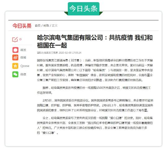 【媒體關(guān)注】 哈電集團(tuán)馳援疫區(qū)廣受媒體關(guān)注