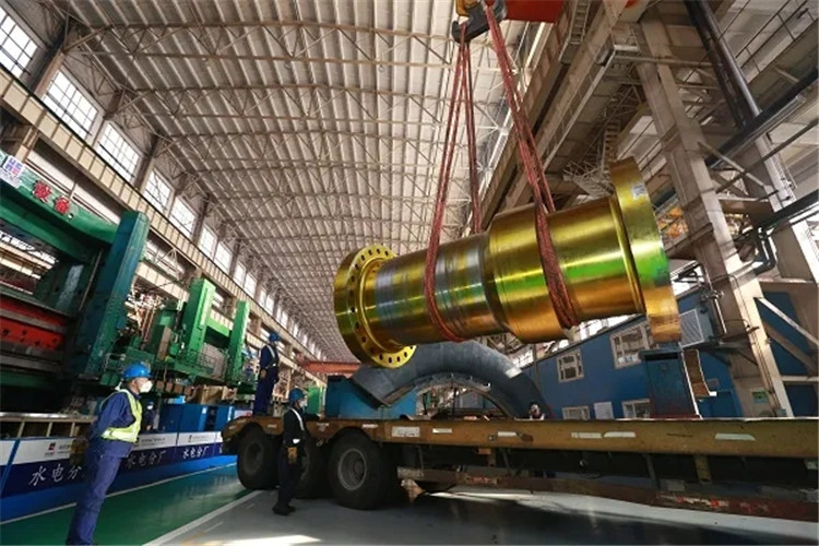 哈電集團(tuán)有序復(fù)工復(fù)產(chǎn),操作者正在吊運(yùn)兩河口4號機(jī)主軸。