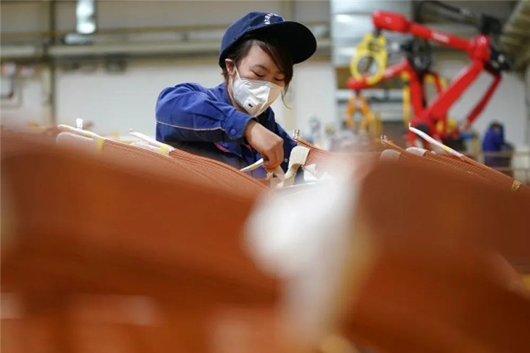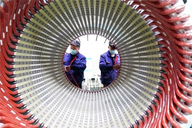 在哈電動裝的生產(chǎn)車間,工人在進(jìn)行生產(chǎn)作業(yè)(3月18日攝)。新華社記者 王建威 攝