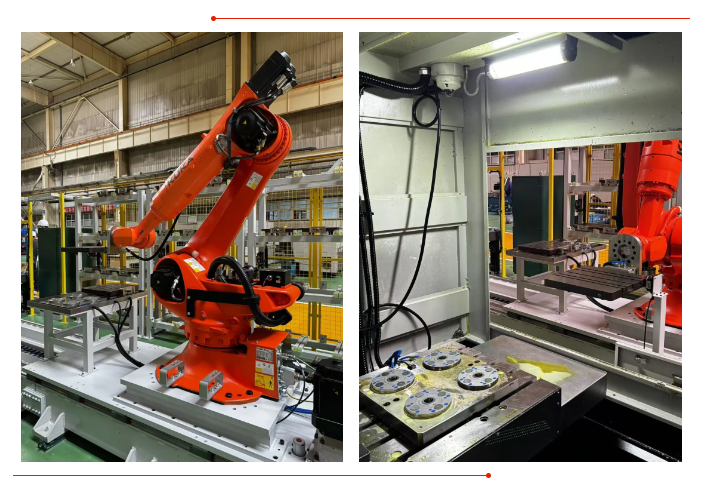 2024年初,針對(duì)公司核電主導(dǎo)產(chǎn)品CAP/AP系列屏蔽主泵電機(jī)軸承平衡塊、擋板、瓦基、導(dǎo)瓦、支撐塊、推力軸瓦隔熱層等十余種小批量關(guān)鍵部件,開展柔性自動(dòng)化加工模式探索研究。經(jīng)過反復(fù)論證,確定通過零件自動(dòng)輸送系統(tǒng)、機(jī)床加工工作站、機(jī)器人執(zhí)行系統(tǒng)、生產(chǎn)輔助系統(tǒng)、FMS柔性控制系統(tǒng)等配合,實(shí)現(xiàn)柔性自動(dòng)化加工模式創(chuàng)新,推進(jìn)產(chǎn)品質(zhì)量和加工效率提升。