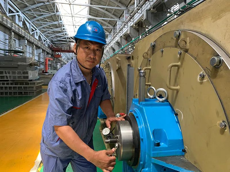 該同志在2021年參與部門新產(chǎn)品電機(jī)裝配時,由于電機(jī)的設(shè)計轉(zhuǎn)速、容量等參數(shù)與以往電機(jī)有很大的不同,他在裝配前通過熟悉工藝文件、與工藝設(shè)計人員技術(shù)交底,明確關(guān)鍵工序及重點部位,做好各項準(zhǔn)備工作,既提高生產(chǎn)效率同時又提升試驗成功保險系數(shù)。2021年6月,80MW風(fēng)洞電機(jī)在某現(xiàn)場運行時出現(xiàn)軸向串動大的問題,他受公司指派前往正值新冠疫情形勢嚴(yán)峻的沈陽,到達(dá)現(xiàn)場后經(jīng)仔細(xì)分析,憑借豐富的實踐經(jīng)驗,將工藝頂軸裝置拆卸后更換位置重新裝配,僅用一天時間就解決了用戶燃眉之急,獲得用戶的充分肯定。